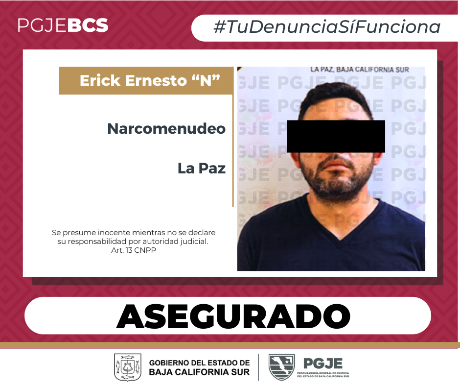 Cae en La Paz con 875 dosis de metanfetamina; PGJE lo detiene en operativo de investigación